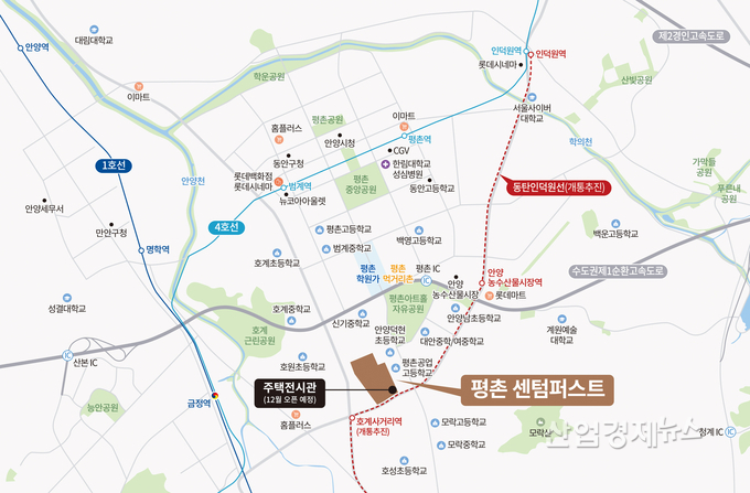 호계동 일대에 평촌 센텀퍼스트를 포함해 약 8,000가구를 신규 공급하는 재개발·재건축 사업이 진행 중이다. 정비사업이 모두 완료되면 안양의 신흥 주거중심지가 탄생할 전망이다. 이 일대에 생활 인프라가 확충되는 것은 물론 북측에 위치한 평촌신도시 생활권을 공유할 수 있어 실수요자들의 주거 만족도가 높을 것으로 기대된다.