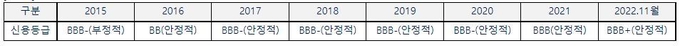 동국제강 신용등급 변화