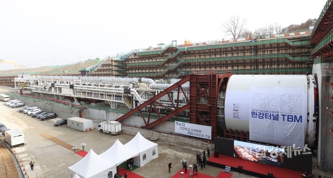 한강터널 구간은 터널 상부의 흙 두께가 비교적 얕고 수압이 높으며 복합지반으로 이뤄진 고난이도 현장이다. 한강터널 굴진에 사용하는 TBM은 직경 14.01m, 총 길이 125m, 무게 3천184t의 초대형 장비로, 국내 최대 구경(口徑)이자 해외에서도 시공사례가 흔치 않은 규모다.