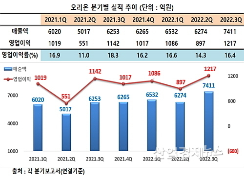3분기 연결 매출 7411억(yoy 18.5%↑), 영업이익 1217억(6.6%↑) 시현...사상 첫 분기매출 7천억대 올라