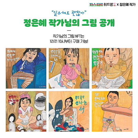 롯데제과에 따르면 ‘실수해도 괜찮아’ 디지털 아트 프로젝트는 아이들과 엄마들을 응원하는 일환으로 기획됐으며, 살면서 다양하고 귀여운 실수를 하는 아이들의 사연과 사진을 응모 받아 정은혜 작가와 함께 NFT 아트워크로 재탄생시켰다.