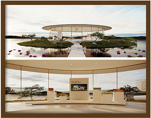 특히 호수 위에 고즈넉하게 자리 잡은 메인 홀은 당해 연도의 국빈세트를 소개하는 공간으로, 최소한의 장식으로 마감된 미니멀한 분위기가 평화로움을 선사하며,