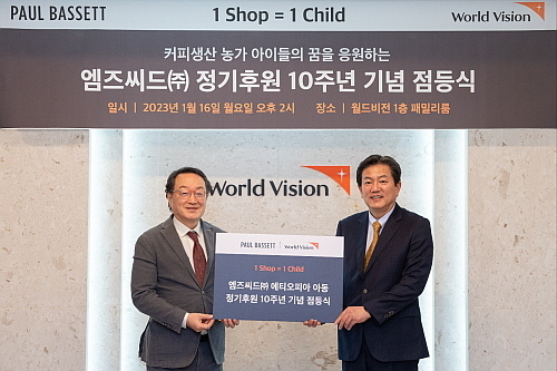 지난 16일 월드비전 본사에서 열린 기념행사에 폴 바셋 김용철 대표와 월드비전 조명환 회장이 참석해 도너월(Donor wall)에 엠즈씨드 현판을 부착하고, 점등하는 행사를 연 것인데, 사실 폴 바셋은 2014년부터 월드비전의 비전스토어 캠페인에 참여해 1점포당 1명의 아동을 후원하는 ‘1Shop=1Child’활동을 이어왔다.