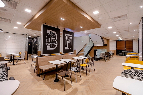 매장 외부에는 리사이클링이 가능한 우드 무늬 패널 적용은 물론, ‘맥카페’ 커피 추출 후의 찌꺼기인 커피박을 함유한 친환경 합성 목재로 만든 안전 난간도 설치했다.
