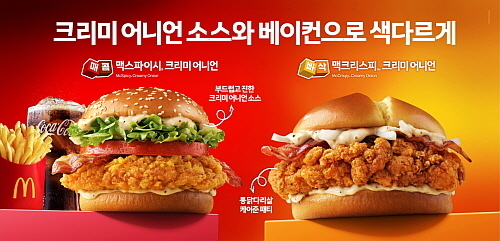 먼저 맥도날드는 지난 2일, 기존 인기 치킨 버거 메뉴에 크리미 어니언 소스와 베이컨을 더한 ‘맥크리스피 크리미 어니언’, ‘맥스파이시 크리미 어니언’ 2종을 출시했다.