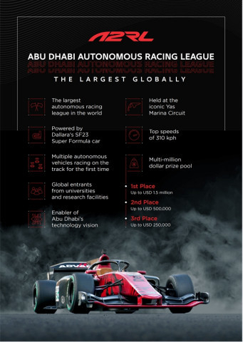 총 225만달러(29억4000만원) 상당의 대회 상금이 걸려 있는 아부다비 자율주행 자동차 레이싱 대회는 슈퍼 포뮬러 주관사인 일본레이싱프로모션의 지원으로 포뮬러 경주용 차량 제작 전문 업체인 달라라의 슈퍼 포뮬러 차량이 사용된다.