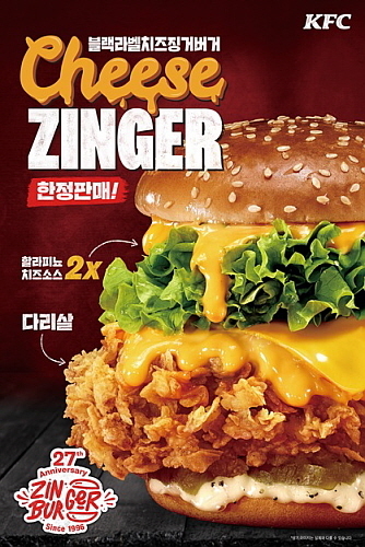 KFC, 징거버거 27주년 기념 한정 메뉴 ‘블랙라벨치즈징거버거’ 출시