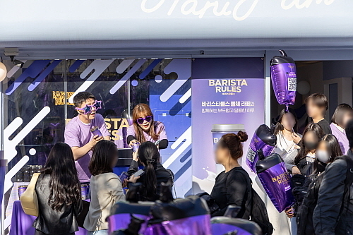 체험존은 바리스타룰스 돌체 라떼 제품의 대표 색상인 보라색을 활용해 다채롭게 꾸며졌다. 포토존에는 바리스타룰스 돌체 라떼 풍선과 제품 모형 등 홍보물을 배치해 다양한 볼거리와 즐길 거리를 마련했다.