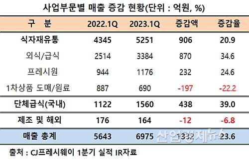 3개 사업부 중 식자재유통과 단체급식이 호 실적 합작..제조(해외)만 부진