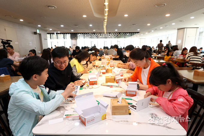 [엔트로피타임즈 최기훈 기자] 대우건설(대표이사 백정완)은 지난 13일 가정의 달을 맞이해 가족과 함께 태양광 랜턴을 만들어 에너지 부족 국가에 기부하는 행사를 진행했다. 이번 행사는 대우건설 임직원과 자녀와 함께 을지로 본사에서 실시하였으며, 총 280명이 참여해 성황리에 마무리되었다.