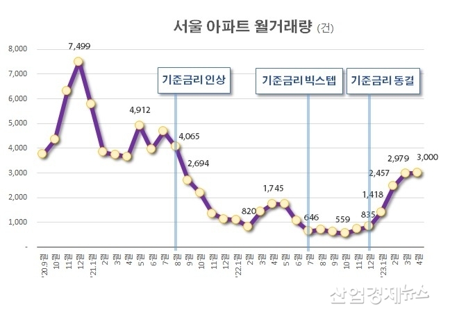지난해 말 주택시장은 두 차례의 금리빅스텝을 맞으며 급속히 침체됐고, 거래량도 지난해 말 최저 수준을 기록했다. 서울부동산광장에 따르면 지난해 7월과 10월 기준금리 빅스텝이 단행된 이후, 아파트 월 거래량은 1,000~2,000건에서 559건까지 줄었다. 시장에서는 '거래절벽'이라는 말까지 나왔다.