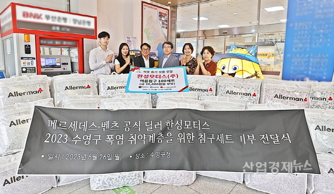 올해 본격적인 무더위를 앞둔 가운데, 한성모터스는 노약자나 만성질환자 등 폭염 취약계층에게 냉감 소재를 활용한 여름침구세트를 제공해 온열 질환에 피해가 없는 건강한 여름 생활을 보장할 예정이다. 기부된 물품은 수영구 관내 사회복지시설에 전달되어 노인과 장애인, 아동청소년 등 폭염 취약계층을 위해 사용된다.
