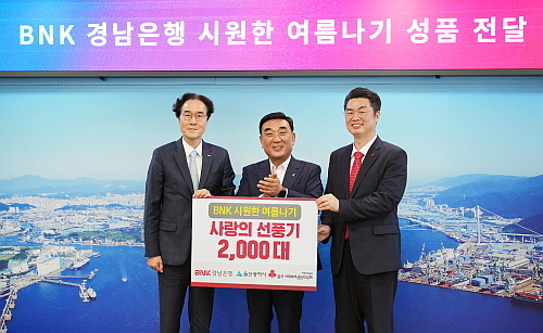 BNK경남은행은 지역 저소득 취약계층을 돕는 ‘BNK 시원한 여름나기 지원 사업’의 일환으로 지난 5일 울산광역시에 ‘사랑의 선풍기 2000대’를 기탁했다.