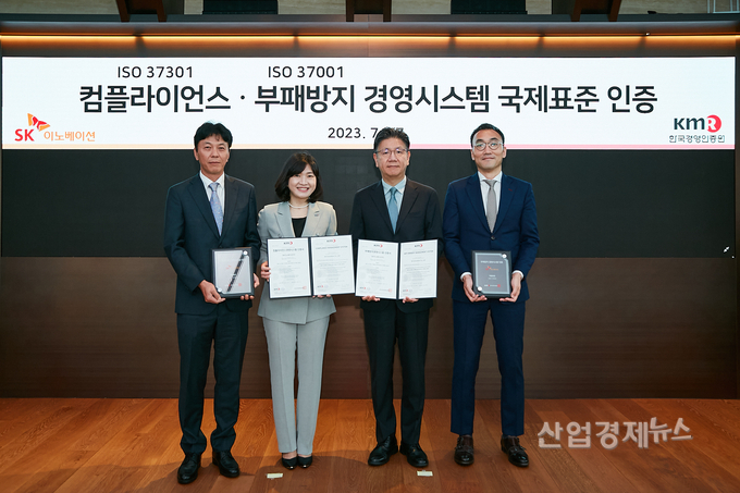 SK이노베이션은 한국경영인증원으로부터 컴플라이언스 경영시스템(ISO37301)과 부패방지 경영시스템(ISO37001) 국제표준인증을 동시 취득했다고 17일 밝혔다.