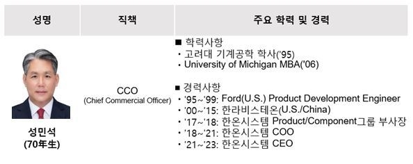 성 CCO는 포드 재직 경험뿐 아니라 여러 글로벌 완성차 제조사에 제품을 납품하는 한온시스템에서 CEO까지 지낸 만큼, CCO직책에 최적임자라는 평가다.