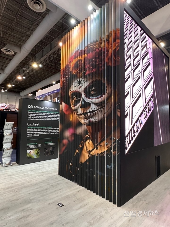 동국씨엠은 프리미엄 건축자재 ‘럭스틸’(Luxteel)을 중심으로 중남미 건축 바이어와 소통했다. 디지털프린팅 제품으로 무한한 패턴 구현 능력을 선보임과 동시에, 현관문·지붕재·차고도어 등 멕시코 시장 선호도가 높은 제품으로 부스를 구성했다. 또한 럭스틸 라인패널을 전시해 동국씨엠이 소재를 넘어 가공 솔루션을 제공할 수 있는 기업임을 알렸다.