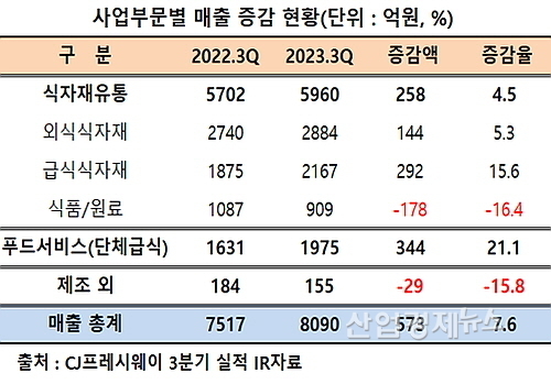 그렇다면 CJ프레시웨이 측에서 분석해 제시한 3개 사업부별 세부 실적은 어떠했을까?