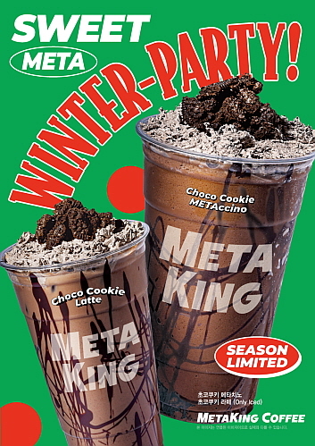 [엔트로피타임즈 민경종 기자] 토종커피전문점 탐앤탐스에서 론칭한 잘파 세대 타깃 카페 프랜차이즈 ‘메타킹 커피’가 겨울 시즌 리미티드 음료인 초코 쿠키 2종을 출시하고 음용을 제안했다.