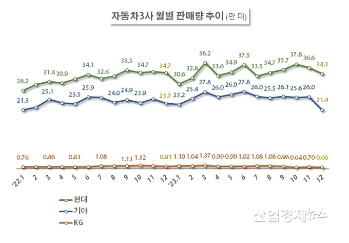 자동차3사가 모두 2023년 연간실적은 호조를 나타냈지만, 지난해 12월 실적이 감소하는 추이를 보여 올해 판매에 대한 우려의 목소리가 업계에서 나온다.