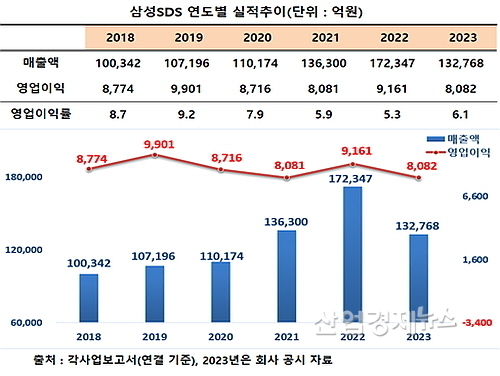 삼성SDS 설명에 따르면 먼저 지난해 연결 매출은 13조2768억 원, 영업이익 8082억 원의 잠정실적을 시현했다. 매출액은 전년 대비 23%, 영업이익은 11.8% 감소했다.