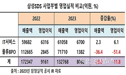 사업부별 실적, ‘IT서비스 외형·손익 신장 vs 물류사업 큰 폭 감소’