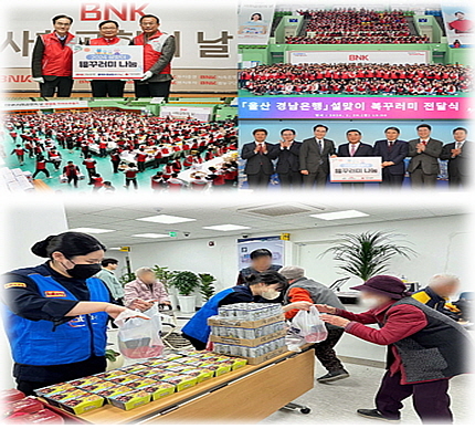 BNK경남은행은 민족 최대 명절인 설날을 앞두고 지난달 20일, 경남과 울산지역 취약계층 총 6150세대에 3억750만원 상당의 ‘복꾸러미’를 기탁하는 ‘설날맞이 사랑나눔사업’을 전개했다.