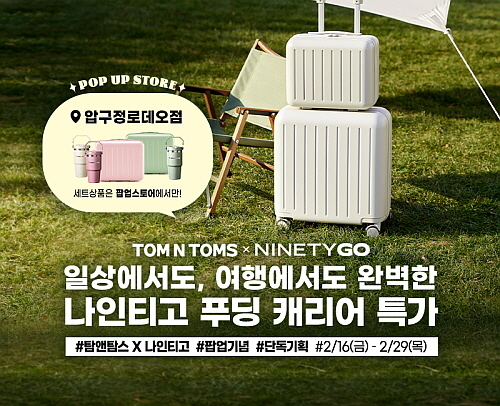 이에 이번 팝업스토어에서는 최대 51% 할인과 함께 지난 겨울프리퀀시에서 큰 사랑을 받았던 나인티고 푸딩 13인치 레디백과 푸딩 18인치 캐리어(블로썸핑크, 올리브그린, 크림화이트) 단품과 함께 파스텔톤으로 컬러감이 맞는 탐앤탐스 트래블 텀블러(로즈핑크, 라이트카키, 웜아이보리) 세트 구성을 선보인다.