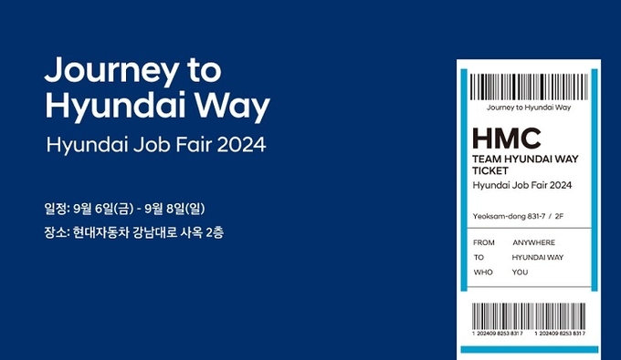 또한, 현대차는 예비 지원자와 현직자 간 소통의 장을 마련하기 위해 9월 6일(금)부터 8일(일)까지 3일간 강남대로 신사옥에서 ‘2024 현대차 잡페어’를 개최한다.
