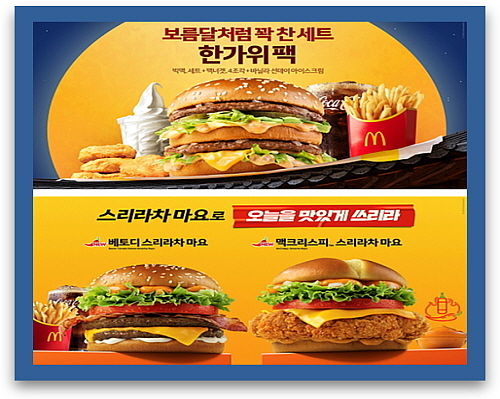 [엔트로피타임즈 민혜정 기자] 맥도날드가 추석을 앞두고 온 가족이 함께 즐길 수 있는 ‘한가위팩’과 ‘스리라차 마요’ 버거 신메뉴 출시 및 구교환을 발탁한 CF를 잇따라 선보이며 소비자 유치전에 나섰다.