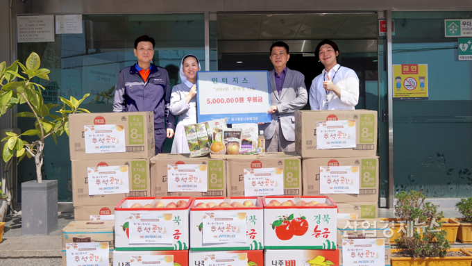 물류 계열사 인터지스는 10일 부산중구종합복지관에서 ‘인터지스와 함께하는 추석 정 나눔 행사’를 갖고 매칭그랜트 방식으로 모금한 기부금 500만원을 전했다. 매칭그랜트는 임직원이 자발적으로 모은 기부금에 회사가 동참하는 방식이다. 부산중구종합복지관은 인터지스 후원금을 활용해 저소득 150가구에 송편·과일 등이 담긴 명절 꾸러미를 전할 계획이다.