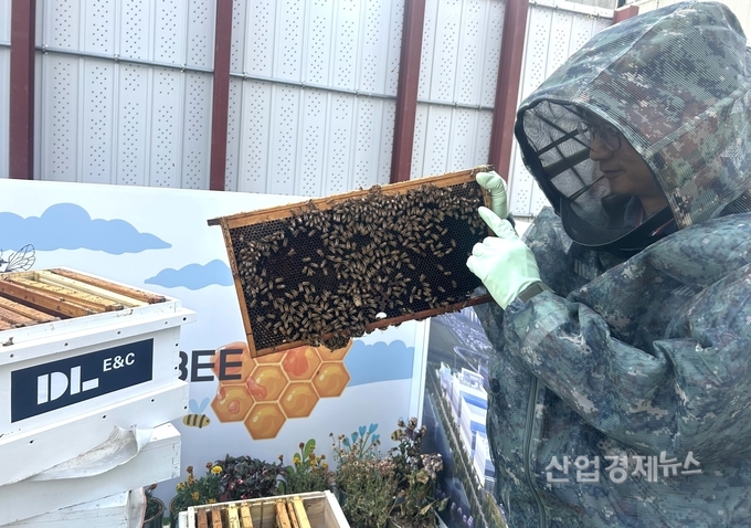 DL이앤씨는 꿀벌 생태계 회복 활동에 동참하기 위해 지난 5월 수도권의 한 공사 현장에 도심 양봉장을 조성하고 운영에 들어갔다. 현장 직원들은 양봉용 모자와 작업복을 착용하고 벌통 내 소비장(벌집)을 주기적으로 점검했다. 벌통에 진드기가 생기는 것을 막기 위해 일일이 약제를 뿌리는 것은 물론, CCTV를 지켜보다 말벌이 나타나면 달려가 잡는 등 정성을 들여 관리했다.