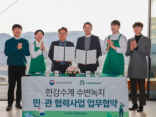이를 위해 지난 20일 한강유역환경청 김동구 청장과 스타벅스 코리아 신동우 전략기획본부장 및 관계자들이 참석해 한강 상수원 보호 및 탄소 저감을 위한 수변녹지 공간을 조성하여 생태계 회복에 기여하겠다는 협약을 체결한 것.
