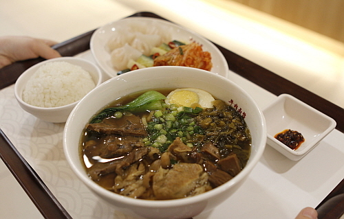 구내식당에서도 우육탕면 본연의 맛을 최대한 동일하게 구현하기 위해 육수와 더불어, 오이소채, 갓절임, 라장소스 등을 매장에서 그대로 옮겨왔다.