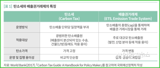 ![현재 시행중인 탄소배출권 거래제만으로는 탄소 중립 가치 구현이 어려울 수도 있다. 자료는 탄소세와 배출권 거래제를 비교한 내용.[자료=국회예산정책처]](http://biznews.mediaon.co.kr/data/photos/20250521/art_17477268899951_d7ce4a.jpg)
