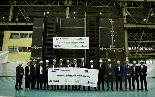 삼성물산은 현지시각 지난 27일 일본 요코하마 IHI 공장에서 루마니아 SMR 프로젝트 사업주인 로파워와 미국의 플루어, 뉴스케일 및 일본 IHI 관계자들이 참석한 가운데 강판 콘크리트 벽체 모듈화 실증을 선보이고 완성품을 인도하는 행사를 가진 바 있다.