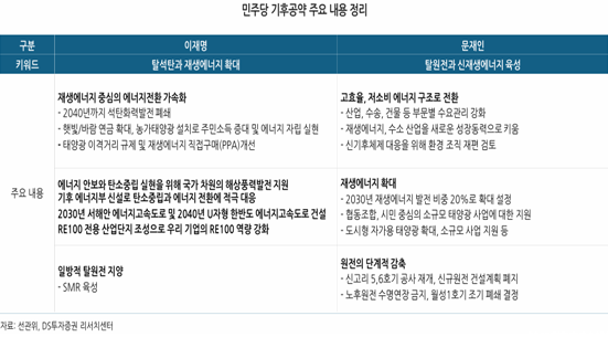 즉, 탄소감축, 친환경 재생에너지 대전환으로 RE100 실현, 재생에너지 중심의 에너지고속도로 건설 등의 공약을 제시했는데, 문재인 정부 때와 다른 점은 일방적인 탈원전을 지양하고 모든 에너지원에 대한 수용을 피력한 것이 차별화 포인트다.