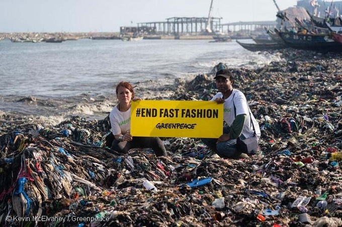 ![패션 산업은 엄청난 플라스틱 오염을 일으키며, 섬유 폐기물을 저개발국으로 보내 문제를 떠넘기고 있다. 가나 아크라의 어촌 마을 제임스타운 해안가로 밀려온 의류 폐기물 더미에서 그린피스 활동가들이 패스트패션 종식을 요구하는 배너를 들고 있다. [사진=그린피스]](http://biznews.mediaon.co.kr/data/photos/20250729/art_17526540325869_398c7b.jpg)