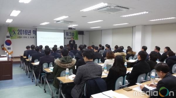 (미디어온) 충남도교육청은 18일부터 19일까지 양일간에 걸쳐 충남학생임해수련원에서 학생수용 업무담당자의 업무능력 향상을 위해 도내 교육지원청 행정과장 및 학생수용업무담당자 등 56명을 대상으로 ‘2016년 학생수용 업무담당자 전문성 강화 연수’를 실시한다고 밝혔다.