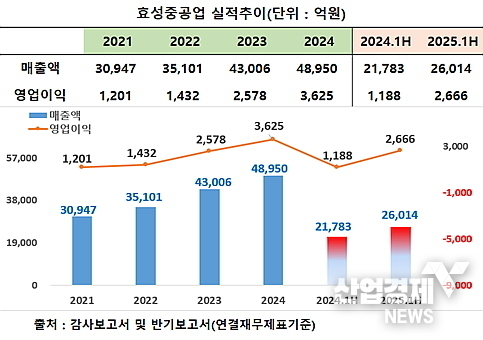 우선 동사 연결감사보고서에 의거해 지난 2021년부터 올 상반기까지의 영업실적을 살펴보면 먼저 매출은 2021년 3조947억 원, 2022년 3조5101억, 2023년 4조3006억, 2024년 4조8950억 원을 시현 매해 역대 최대치를 갱신하고 있다.