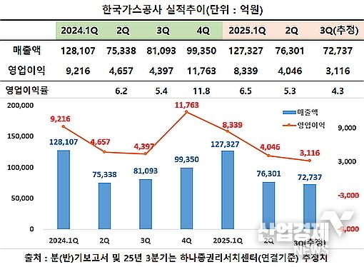 다만 최근 급격히 진행되는 원화 약세 흐름을 감안하면 기말 외화환산손익 개선 규모는 기존 기대치보다 제한적일 가능성이 커졌다. 동절기를 앞두고 있어 도시가스용 가스요금 상승 가능성은 낮다고 내다봤다.