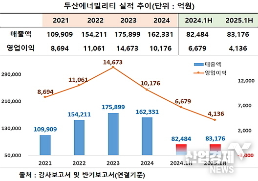 먼저 동사의 감사보고서(연결기준)에 의거해 지난 2021년부터 올 상반기까지 매출과 영업이익 추이를 살펴보면, 우선 매출은 2021년 10조9909억 원, 2022년 15조4211억, 2023년 17조5899억, 2024년 16조2331억 원으로 2023년을 정점으로 상승세가 꺾이는 흐름을 연출했다.