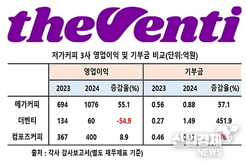 반면에 외형과 손익 모두 증가세를 시현한 메가커피와 컴포즈커피는 더벤티와는 달리 기부금을 조금 늘렸거나 오히려 대폭 줄인 것으로 나타나 대조를 보였다.