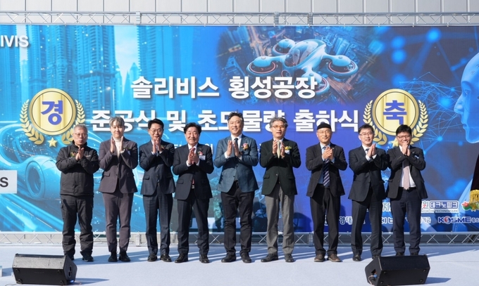 초도물량 출하식을 겸한 이날 준공식에는 신동욱 솔리비스 대표와 김명기 횡성군수, 윤완태 강원도테크노파크 단장, 류창완 한양대 창업지원단 단장, 이상태 네패스이앤씨 대표, 이승욱 뉴라이즌 대표, 강원도 전략산업과 이형찬 과장 등 내빈들과 투자사 및 기타 협력사 관계자 등 100여명이 참석해 솔리비스의 혁신적인 첫걸음을 기념했다.