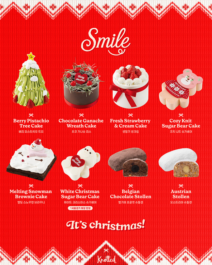 이외에도 ▲깊고 진한 풍미의 ‘초코 가나슈 리스’ ▲생딸기와 생크림의 클래식한 조합이 돋보이는 ‘생딸기 크림’ ▲새하얀 슈가베어 장식을 얹은 ‘화이트 크리스마스 슈가베어’까지 총 6종의 케이크가 준비돼 다양한 취향을 아우른다.