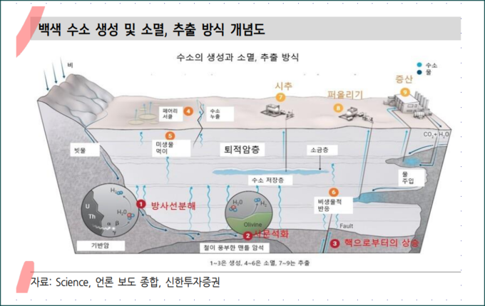 ![황금 수소 혹은 백색 수소라 불리는 이 자원이 가지는 잠재력은 메가톤급 혹은 그 이상이 될 수밖에 없다. 사진은 백색 수소의 생성과 소멸, 추출 방식을 보여주는 개념도 [자료=신한투자증권]](http://biznews.mediaon.co.kr/data/photos/20251250/art_17654172588607_c6de7a.png)