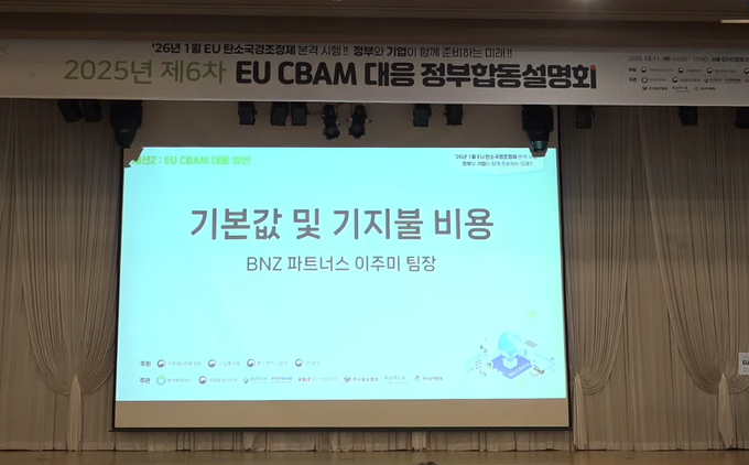 EU CBAM은 수입품의 탄소 배출량과 탄소 가격을 산정해 부과하는 제도로, 내년 1월부터 본격 시행된다. 그러나 세부 규정 발표가 지연되면서 국내 수출기업들이 준비에 어려움을 겪고 있다. 이에 정부는 이번 설명회에서 배출량 산정·검증, 기본값 및 기지불 탄소비용, 대응 우수사례 등을 공유하고 기관별 지원사업을 소개했다.