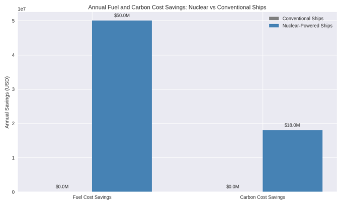 그러나 세계적 차원에서는 원자력 추진이 가져올 경제적 효과에 주목하는 움직임이 커지고 있다. 국제 해운업계가 원자력 추진을 도입할 경우, 선박 한 척당 연간 연료 비용을 최대 30~40% 절감할 수 있다는 분석이 있다. 이는 대형 컨테이너선 기준으로 수천만 달러 규모의 비용 절감 효과를 의미한다.