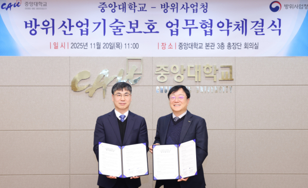 ![중앙대학교와 방위사업청이 중앙대학교 서울캠퍼스 본관 총장실에서 ‘방산기술보호 전문인력 양성을 위한 업무협약(MOU)’을 체결했다. [사진=중앙대]](http://biznews.mediaon.co.kr/data/photos/20260102/art_17677663443604_42e3ef.png)