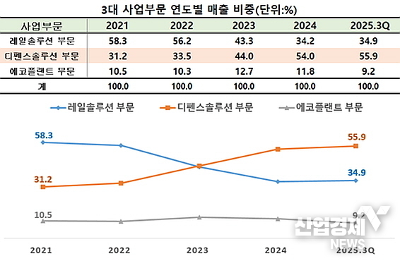 디펜스솔루션(방산) 사업부 성장세 견인...매출 비중 55.9%로 레일사업부 압도