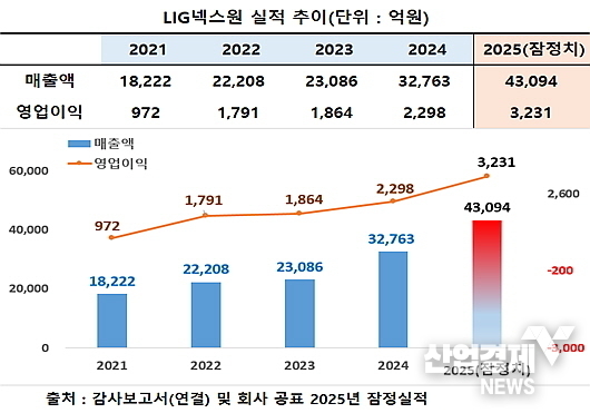 동사 사업보고서와 최근 공시한 2025년 잠정 영업실적(연결기준)에 따르면 먼저 매출은 2021년 약 1조8222억, 2022년 2조2208억, 2023년 2조3086억, 2024년 3조2763억에 이어 지난해는 4조3094억 원(잠정치)을 시현, 매해 역대 최대치를 갱신하는 선전을 펼쳤다.